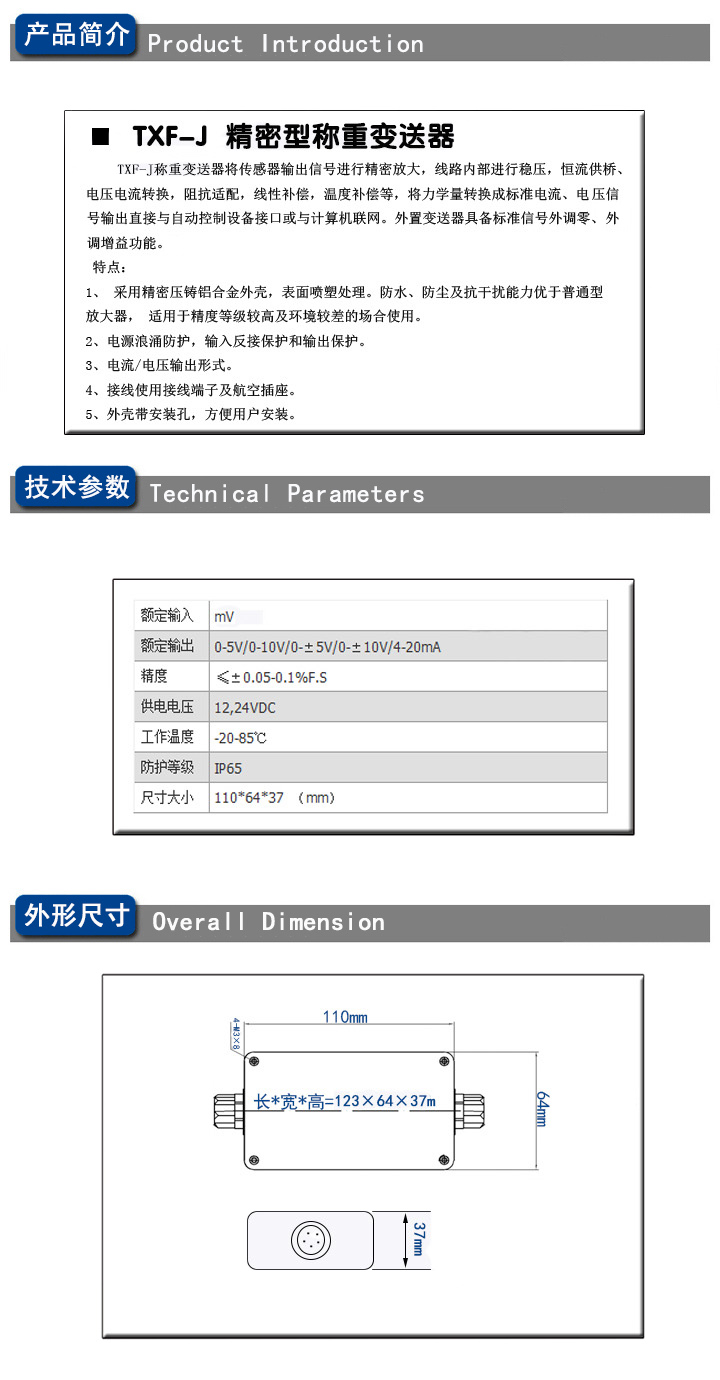 称重变送器也叫做重量变送器,是一种将物理量变换成电信号,将毫伏信号输出的传感器经隔离放大转换成标准直流信号的变送器。通常采用SMT工艺,针对工业过程的电阻应变式信号传感器而设计制造,适用于于不同规格称重传感器。
